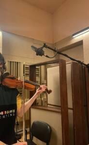 The microphone is directed at the soundboard of the violin (around the f-holes and bridge) and there is close miking. The AKG C414 was used for this recording because it records fine details and has a wide dynamic range. Cardioid pattern was used.